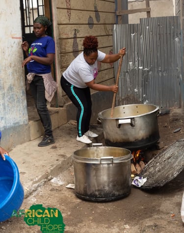 Based in Nairobi, we serve slum communities, supporting children, women, and men with education and meals.